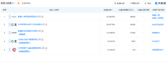 12月16日金融一线消息,天眼查App显示,近日鹏配资,招盈能合(嘉兴)股权投资合伙企业(有限合伙)成立,执行事务合伙人为江苏招银产业基金管理有限公司,出资额18.11亿人民币,经营范围为股权投资。合伙人信息显示,该合伙企业由泰康人寿保险有限责任公司、永州界牌协合风力发电有限公司、泰康养老保险股份有限公司、北京协合资产管理有限公司、江苏招银产业基金管理有限公司共同出资。