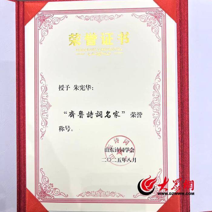 据了解,“山东省优秀诗人”评选活动由各地市及省直诗词学会、团体会员单位选拔并推荐申报候选人及其作品,由山东诗词学会委托第三方组织国内诗词专家进行两轮盲评益通网,再经山东诗词学会会长办公审议通过益通网,授予“山东省优秀诗人”荣誉称号。其中益通网,前三届评选时间分别为2019年、2021年、2023年;两次获得“山东省优秀诗人”称号并在第三届“山东省优秀诗人”评选中得分前10名者益通网,方可授予“齐鲁诗词名家”称号。朱宪华继2021年获评第二届“山东省优秀诗人”之后,今年又获评第三届“山东省优秀诗人”称号,他是菏泽市唯一获此殊荣的文艺工作者。